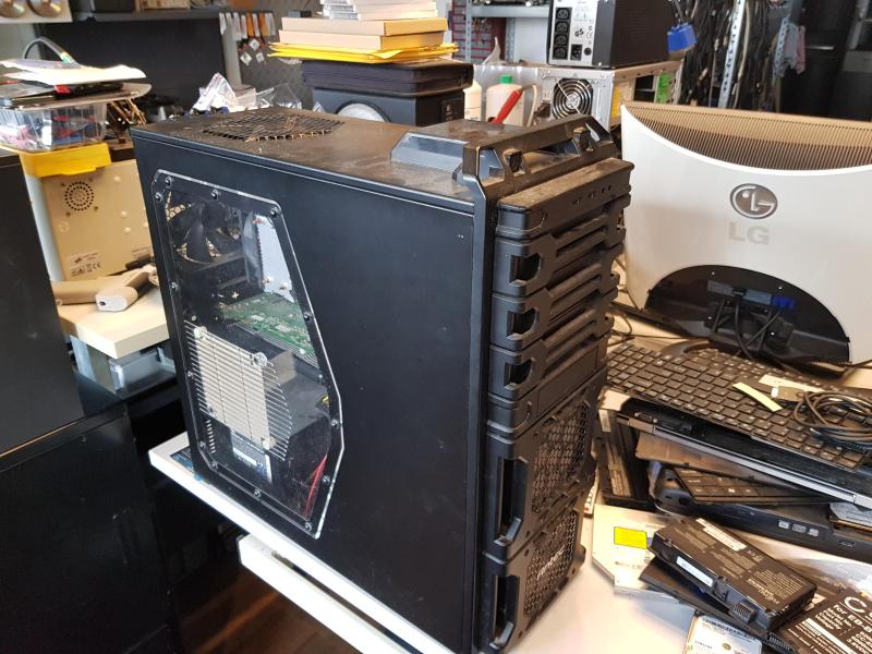 Even later is het systeem omgebouwd. Ziet er wel wat ieliger uit met die Micro-ATX er in. |