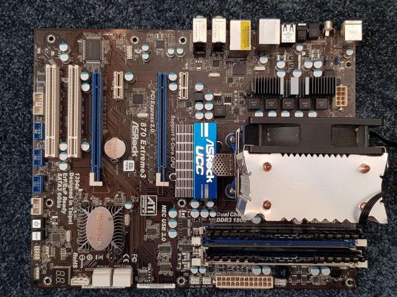 Dit is het moerderbord, een ASRock 870 Extreme-3. |