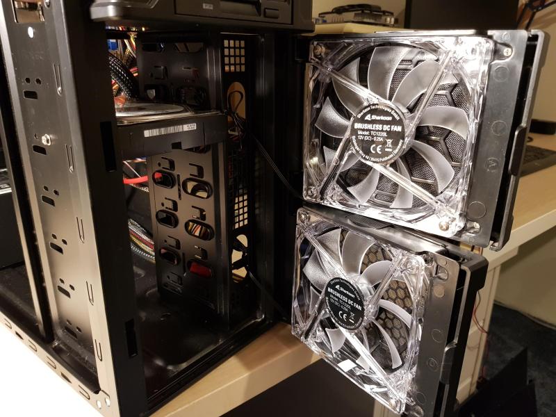 En in hun plaats heb ik twee mooie nieuwe fans gekocht. 2 Sharkoon TC1220L's |
