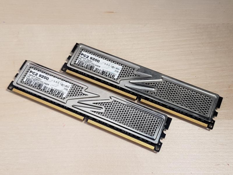 Ook heb er 2 nieuwe geheugenmodules bij gekocht. OCZ PC2 9200, 2GB DDR2 DIMM. 4GB bij elkaar dus, het maximale wat dit bord aan kan. |